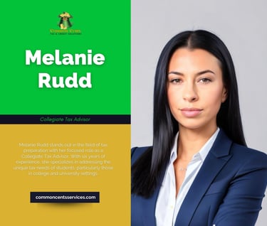For specialized assistance and tailored advice in student tax matters, connect with Melanie Rudd, your go-to Collegiate Tax Advisor. Reach out to her through the following channel: