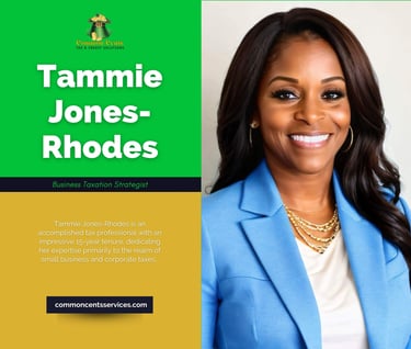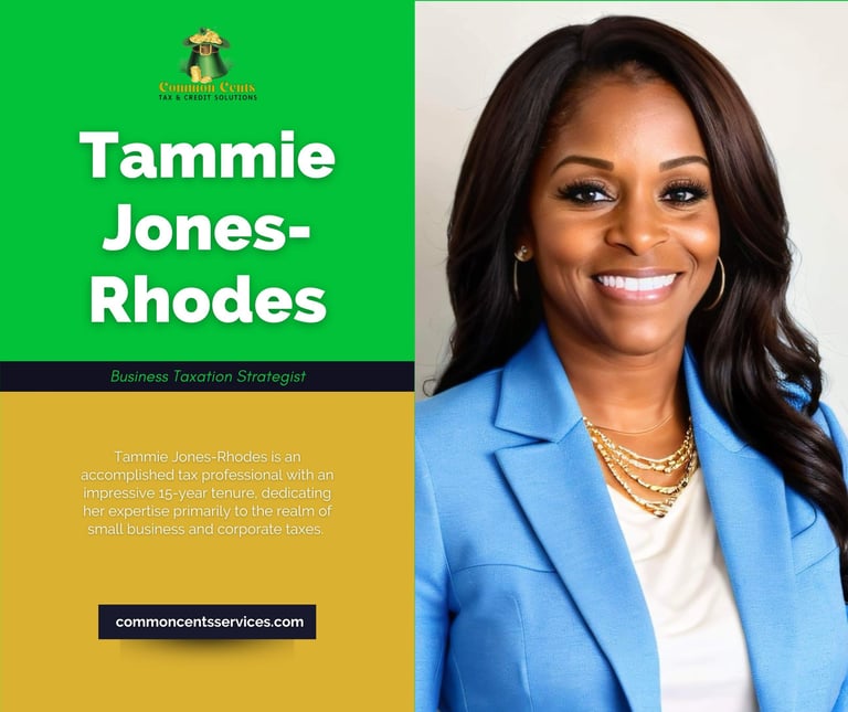 Tammie Jones- Rhodes is an accomplished tax professional with an impressive 15-year tenure, dedicating her expertise primarily to the realm of small business and corporate taxes. Her career is a testament to her deep commitment to helping businesses navigate the intricate tax landscape with ease and precision. Tammie's specialization lies in understanding the unique challenges and opportunities that businesses face, allowing her to devise customized tax strategies that not only ensure compliance but also foster financial health and growth.