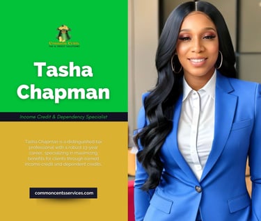 Tasha Chapman is more than a tax professional; she is a financial advocate committed to ensuring that every client benefits from the fullest extent of tax credits available to them. Her dedication, combined with her specialized knowledge in earned income and dependent credits, makes her an invaluable ally in your financial journey.